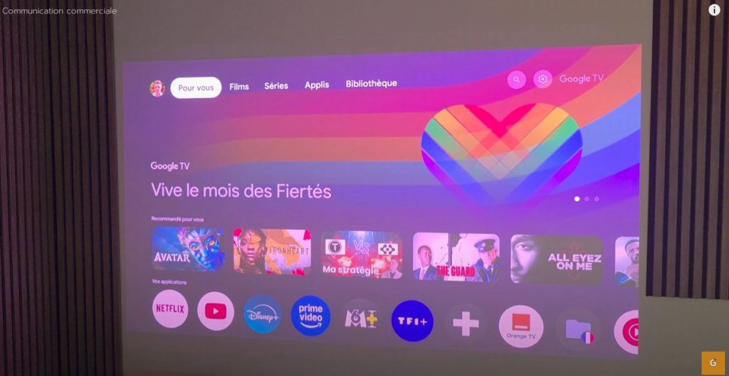 El JMGO N1s 4K funciona con el sistema operativo Google TV. Esto es una ventaja considerable para el acceso a contenidos. Se acabaron las múltiples conexiones con cajas externas. Todo está directamente integrado en este pequeño dispositivo. La interfaz de Google TV es moderna e intuitiva. Puedes acceder a miles de aplicaciones a través de la Play Store. Instala Netflix, Prime Video, Disney+ y muchas más.