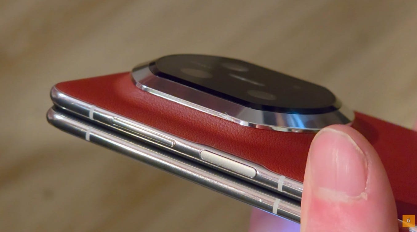 Le design du Huawei Mate X7 respire le luxe. On sent la touche chinoise haut de gamme. Le toucher est vraiment très sympa. Les finitions sont excellentes. À l’arrière, Huawei utilise un dos en cuir vegan. C’est une finition semi-cuir texturée. Cela offre une très bonne accroche en main. Toutefois, cela ne plaira pas à tout le monde. Certains préfèrent un dos lisse.